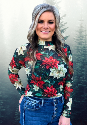 Experience the magic of the holiday season with our Meet Me Under The Poinsettia Mesh Top! With an eye-catching poinsettia design and festive holiday mesh, you'll stand out from the crowd and look undeniably cute. Perfect for spreading cheer and making a statement at any event.